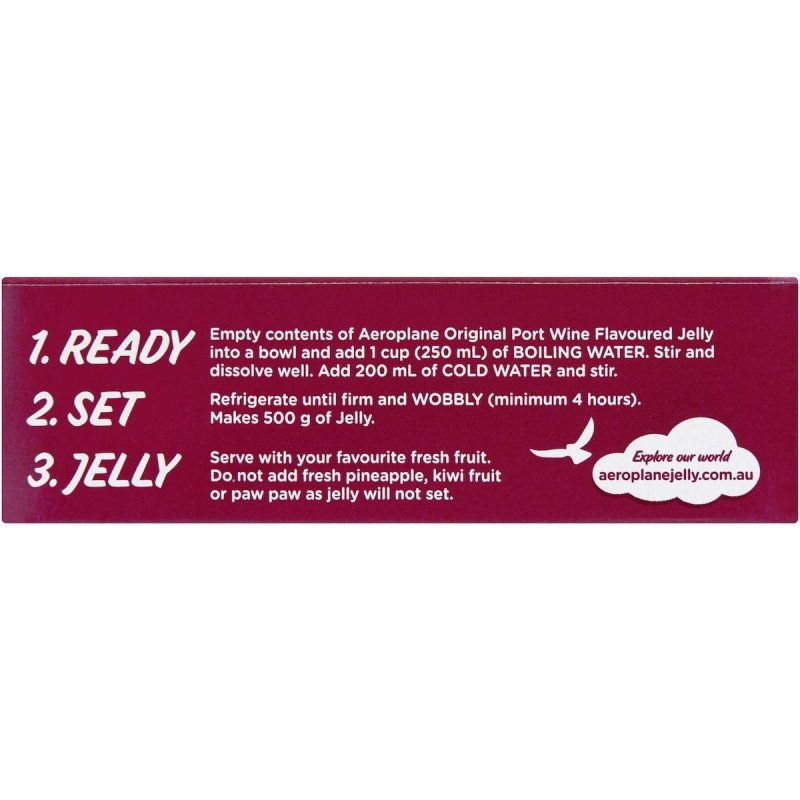 Indulge in the rich and sophisticated flavour of Aeroplane Port Wine Jelly Powder 85g. This easy-to-make jelly combines the deep, fruity notes of port wine with a smooth, wobbly texture, perfect for adding a touch of elegance to any dessert. Simply dissolve the powder in hot water, cool, and refrigerate to set. Ideal for pairing with fruit, trifles, or serving as a standalone treat, Aeroplane Port Wine Jelly brings a classic, refined twist to your dessert creations. Trusted by generations, it’s a timeless favourite for any occasion!