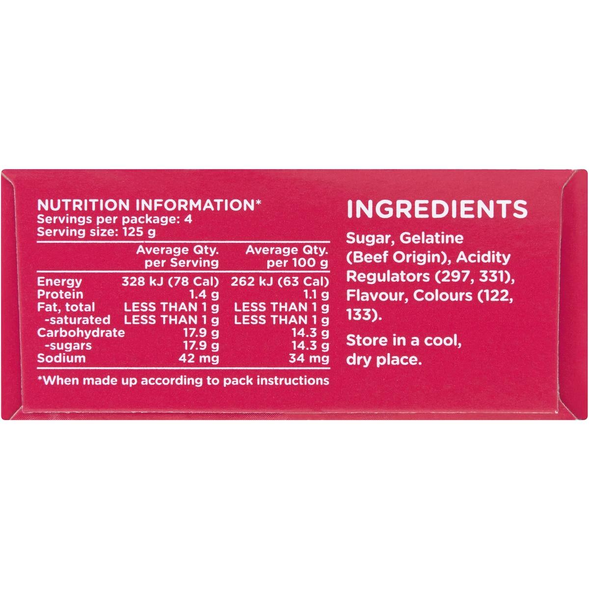 Delight in the nostalgic, fruity flavour of Aeroplane Raspberry Jelly Powder. This 85g pack creates a smooth, vibrant raspberry-flavoured jelly that’s perfect for desserts, parties, or a sweet snack any time. Easy to make, simply dissolve the jelly powder in hot water, let it cool, and refrigerate to set. It’s ideal for adding fun and flavour to fruit salads, trifles, or as a standalone treat. Loved by generations, Aeroplane Jelly is Australia’s trusted brand for a quick, fun, and delicious dessert option that everyone will enjoy!