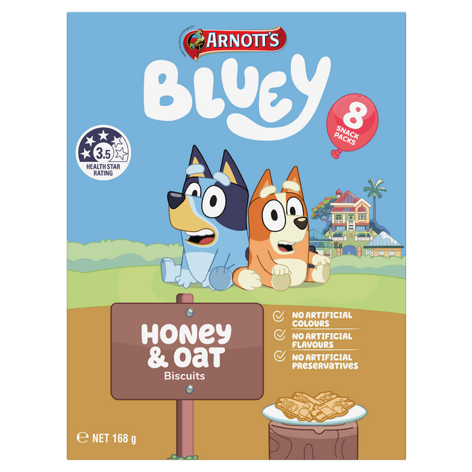 Arnotts Bluey Honey and Oat Flavoured Biscuit Kids Lunchbox Snacks 8 Pack