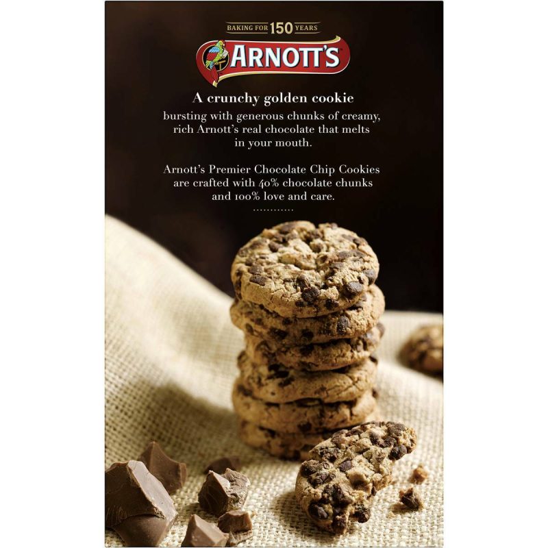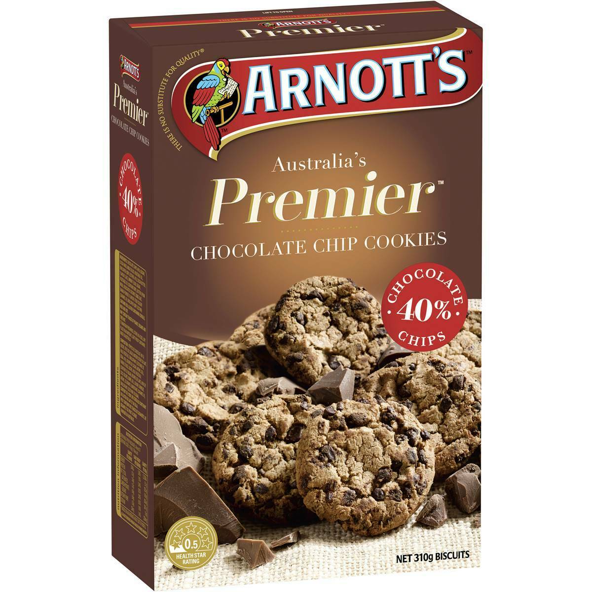 Elevate your cookie experience with Arnotts Premier Chocolate Chip Cookies. This 310g package contains a delectable assortment of cookies that combine rich chocolate chips with a classic cookie base. These cookies are perfect for satisfying your sweet cravings or sharing with guests. The irresistible combination of buttery goodness and decadent chocolate makes every bite a delightful treat for your taste buds. Whether enjoyed with a glass of milk, a cup of coffee, or simply on their own, Arnotts Premier Chocolate Chip Cookies are a timeless choice that brings comfort and indulgence to any moment.