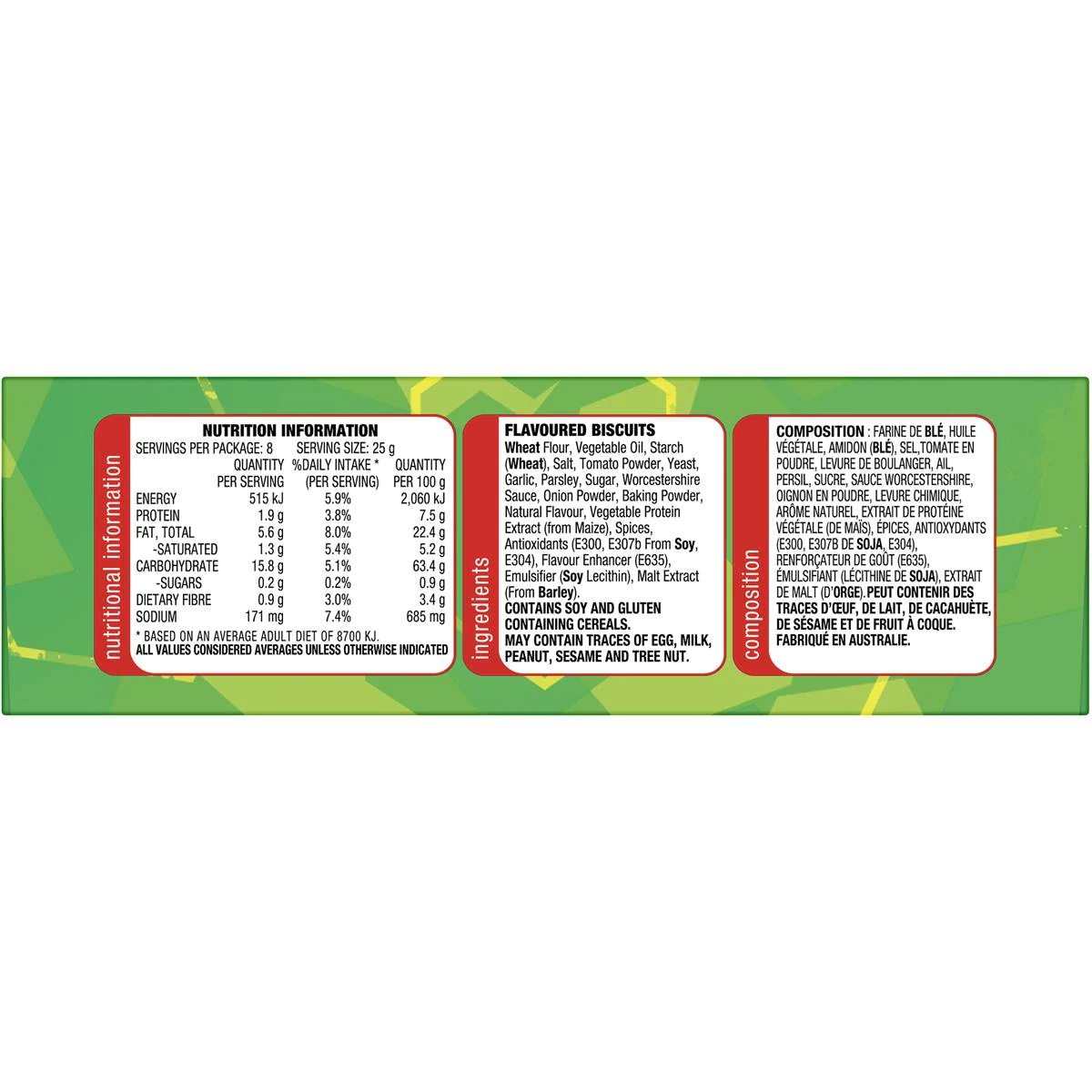 Elevate your snacking experience with the smoky and tangy taste of Arnotts Shapes Original Crackers Barbeque BBQ. This 8-pack box contains crispy and flavorful barbeque-flavored crackers that are perfect for enjoying on their own or dipping in your preferred sauces. With their bold BBQ taste and unique shape, Arnotts Shapes Original Crackers Biscuits Barbeque BBQ are a fantastic choice for gatherings or treating yourself to a tasty snack. Elevate your snacking moments with the delicious and irresistible taste of Arnotts Shapes Original Crackers Biscuits Barbeque BBQ.