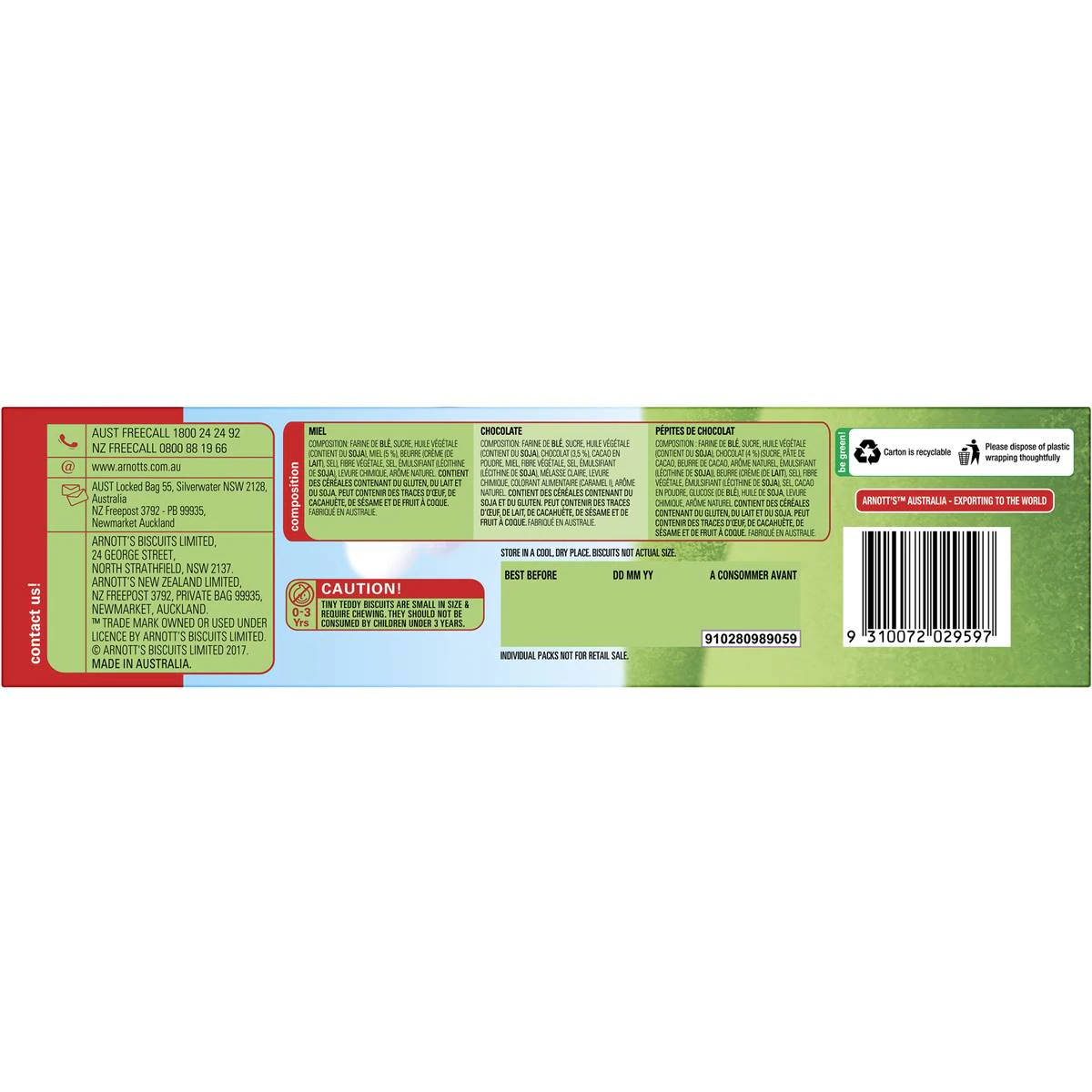 Arnotts Tiny Teddy Teddies Biscuits Variety Box 15 Pack
