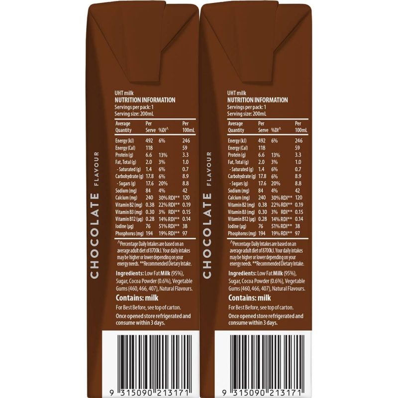 Introducing Australia’s Own Kids Chocolate Flavoured Milk Carton 200ml X 6 Cartons – a delightful and nutritious choice for young taste buds. Crafted by Australia’s Own, a trusted brand dedicated to quality ingredients, each carton offers a perfect blend of chocolatey indulgence and essential nutrients.