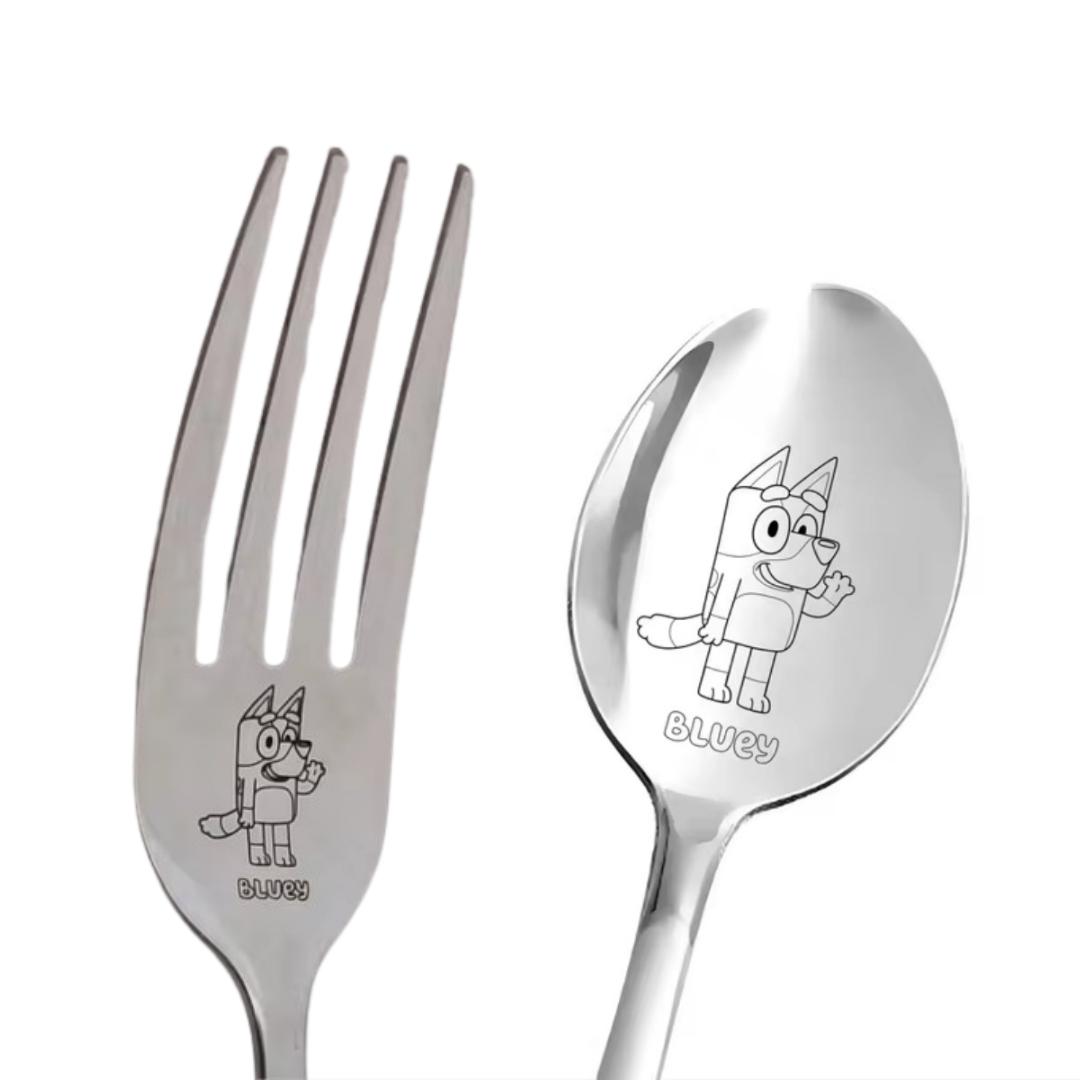 Bluey Engraved Spoon Fork Cutlery Stainless Steel Set for Kids 19cm