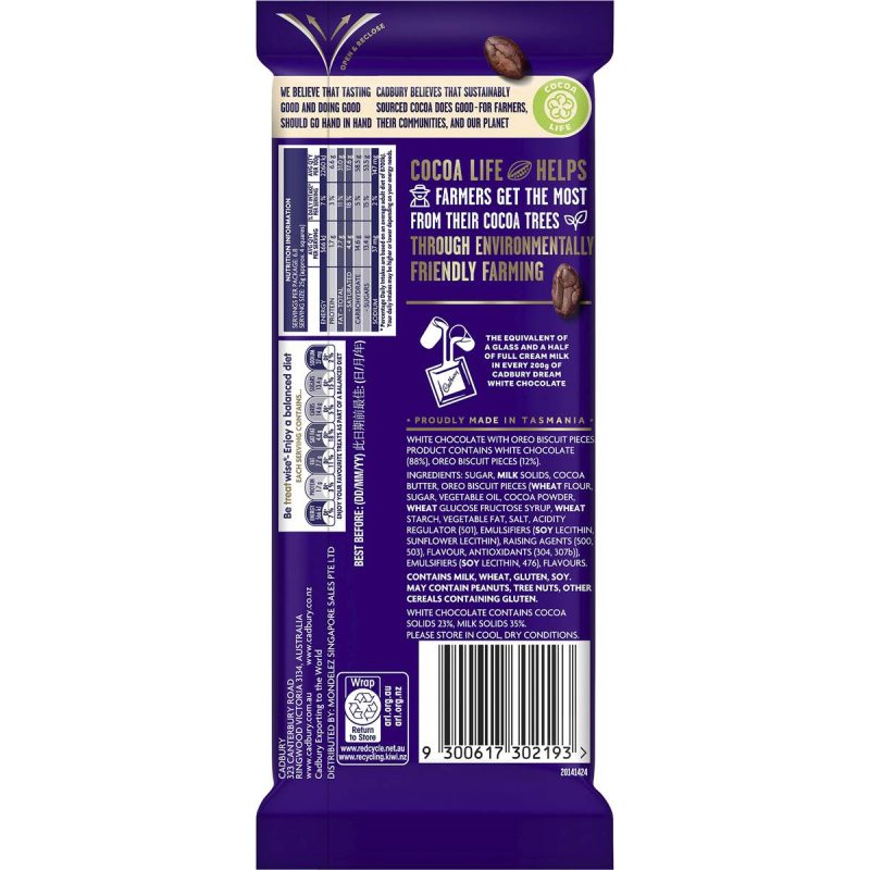 Cadbury Dream with Oreo White Chocolate Block 170g