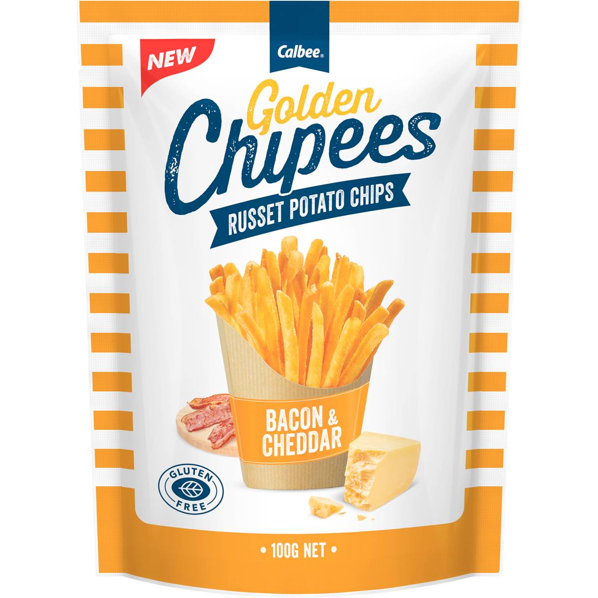 Calbee Golden Chipees French Fries Bacon and Cheddar Russet Potato Chips 100g