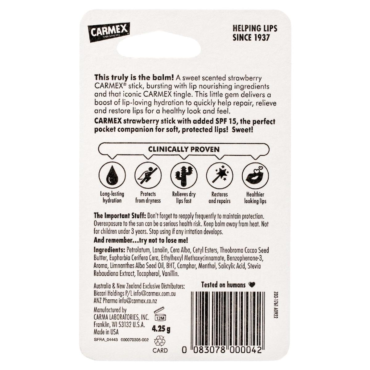 Keep your lips feeling smooth, soft, and nourished with Carmex Moisturising Lip Balm Strawberry. This refreshing balm provides instant relief for dry, chapped lips, delivering long-lasting moisture and protection. Infused with a sweet, fruity strawberry flavour, it leaves your lips feeling soft and smelling delicious.