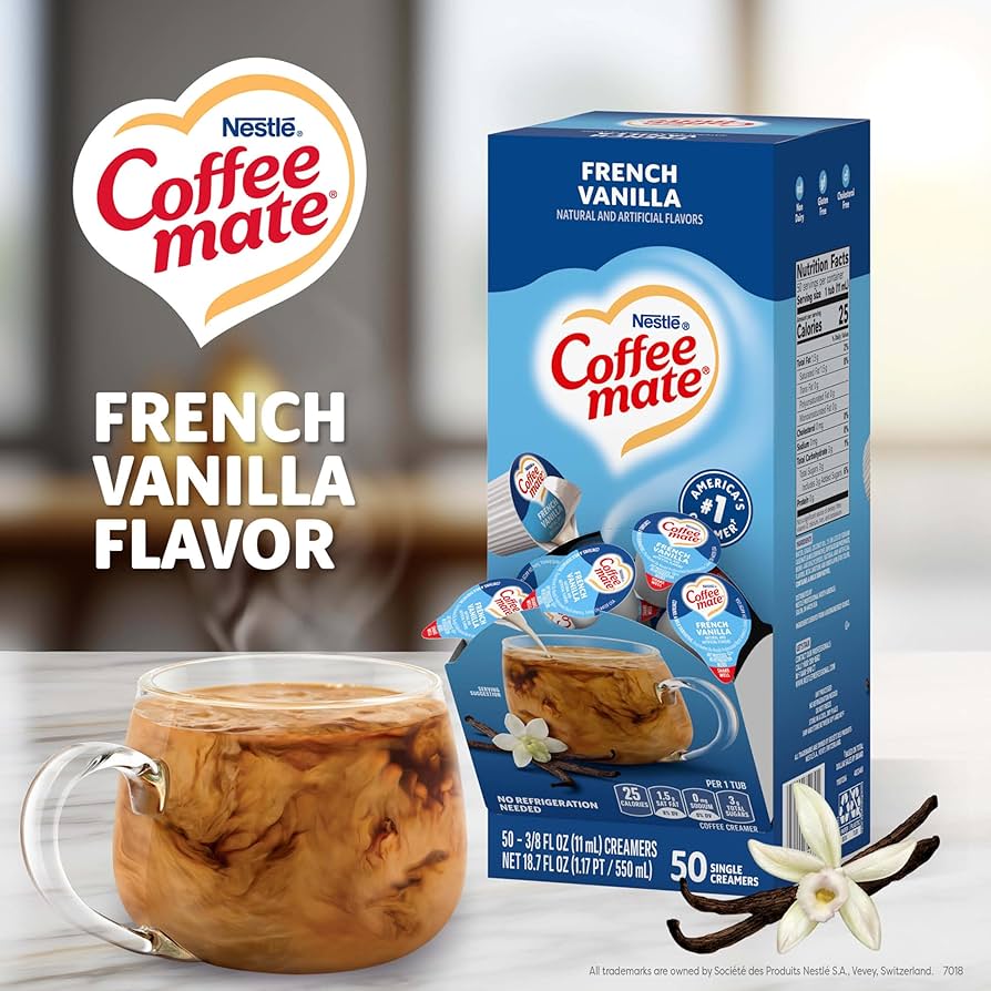 Elevate your daily brew with the smooth, sweet taste of Coffee Mate French Vanilla Creamer – your coffee, your way.