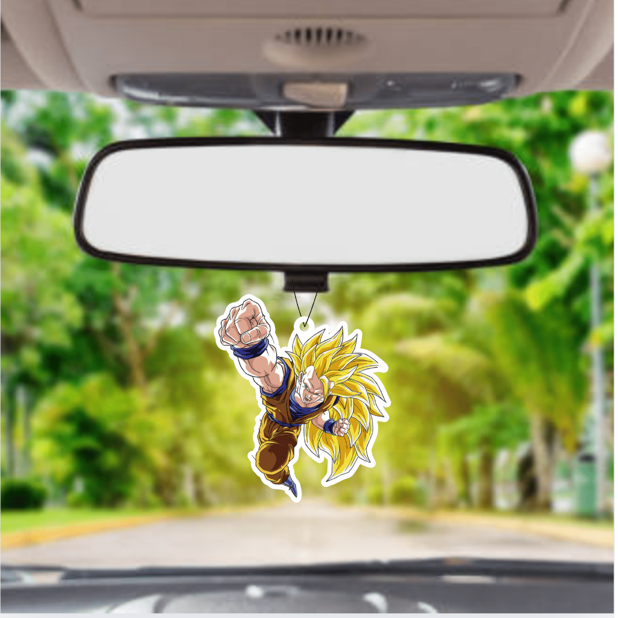 Add a burst of energy and freshness to your ride with this SSJ3 Goku air freshener—perfect for any Saiyan in training!