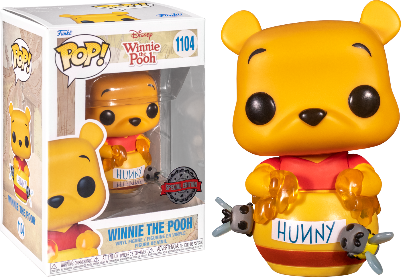 This Pop! features Pooh bear, stuck in a pot of hunny, enjoying said hunny with a couple of buzzy friends. Add him to your collection today!