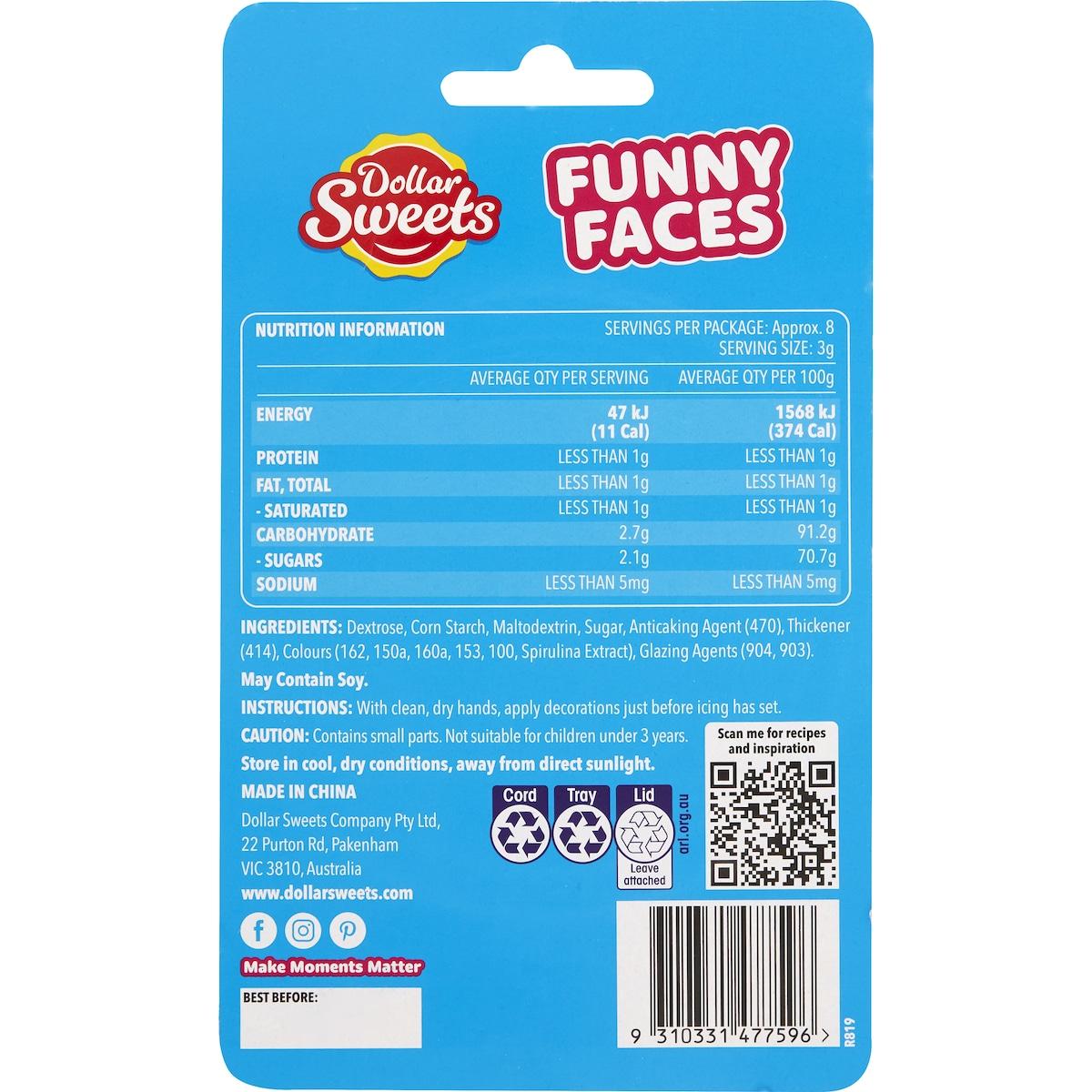Dollar Sweets Funny Faces Cake Decoration Candy 25g