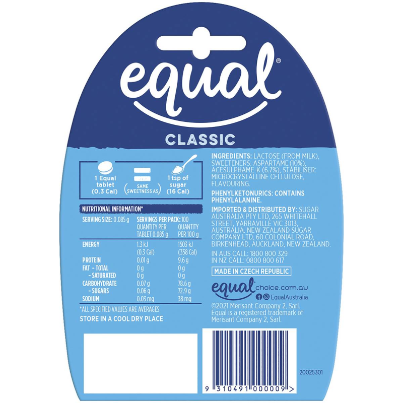 Equal Classic Low Calorie Sweetener Tablets 100 Pack