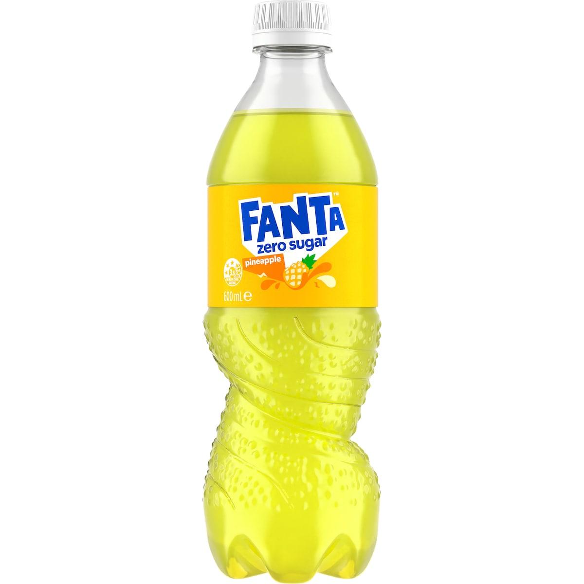 Fanta Pineapple Zero Sugar Soft Drink Bottle 600ml