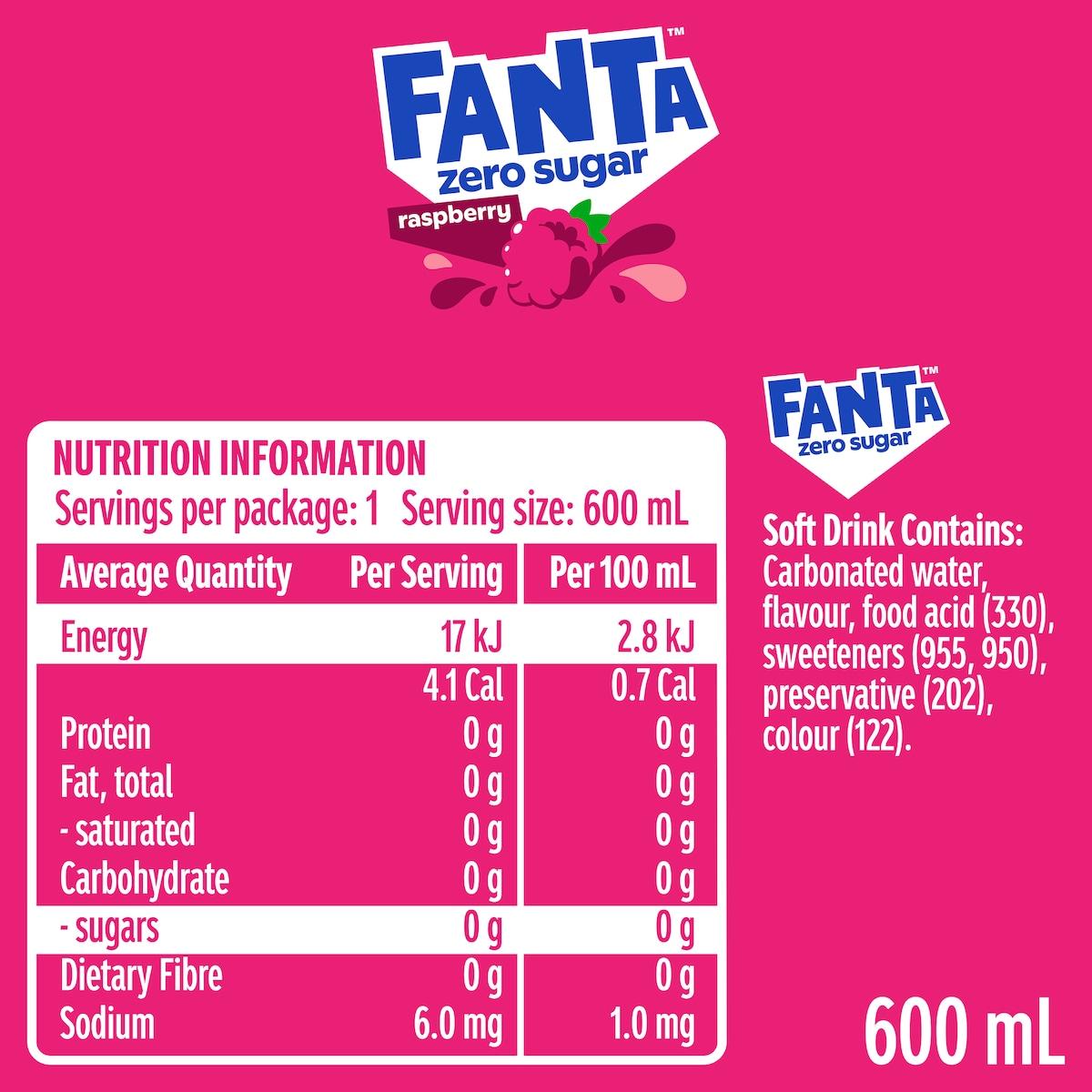 Fanta Raspberry Zero Sugar Soft Drink Bottle 600ml