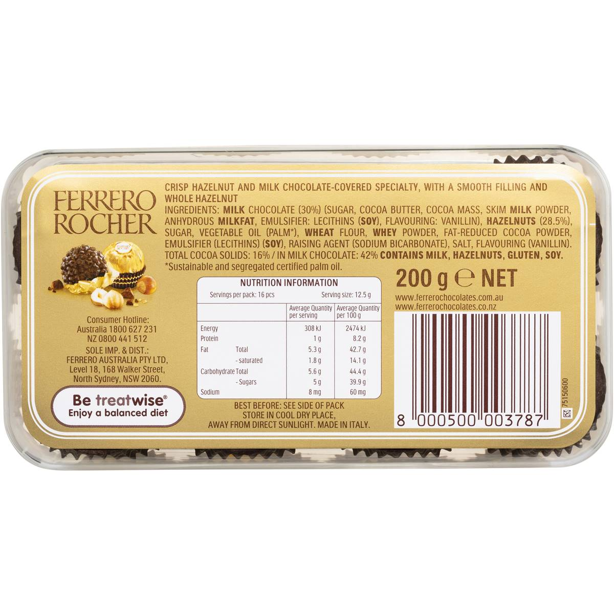 Delight in the luxurious and indulgent experience of Ferrero Rocher Chocolate Balls. This 16-pack gift box offers a collection of individually wrapped chocolate truffles that feature a crunchy hazelnut center, a layer of velvety milk chocolate, and a sprinkling of chopped hazelnuts. Crafted to provide a balance between creaminess, crunchiness, and nuttiness, these chocolate balls are perfect for savoring moments of luxury or sharing with loved ones. Whether you’re seeking a refined gift or looking for a special treat, Ferrero Rocher Chocolate Balls Gift Box brings a sense of elegance and pleasure to every truffle. Embrace the richness and enjoy the exquisite fusion of chocolate and hazelnuts.
