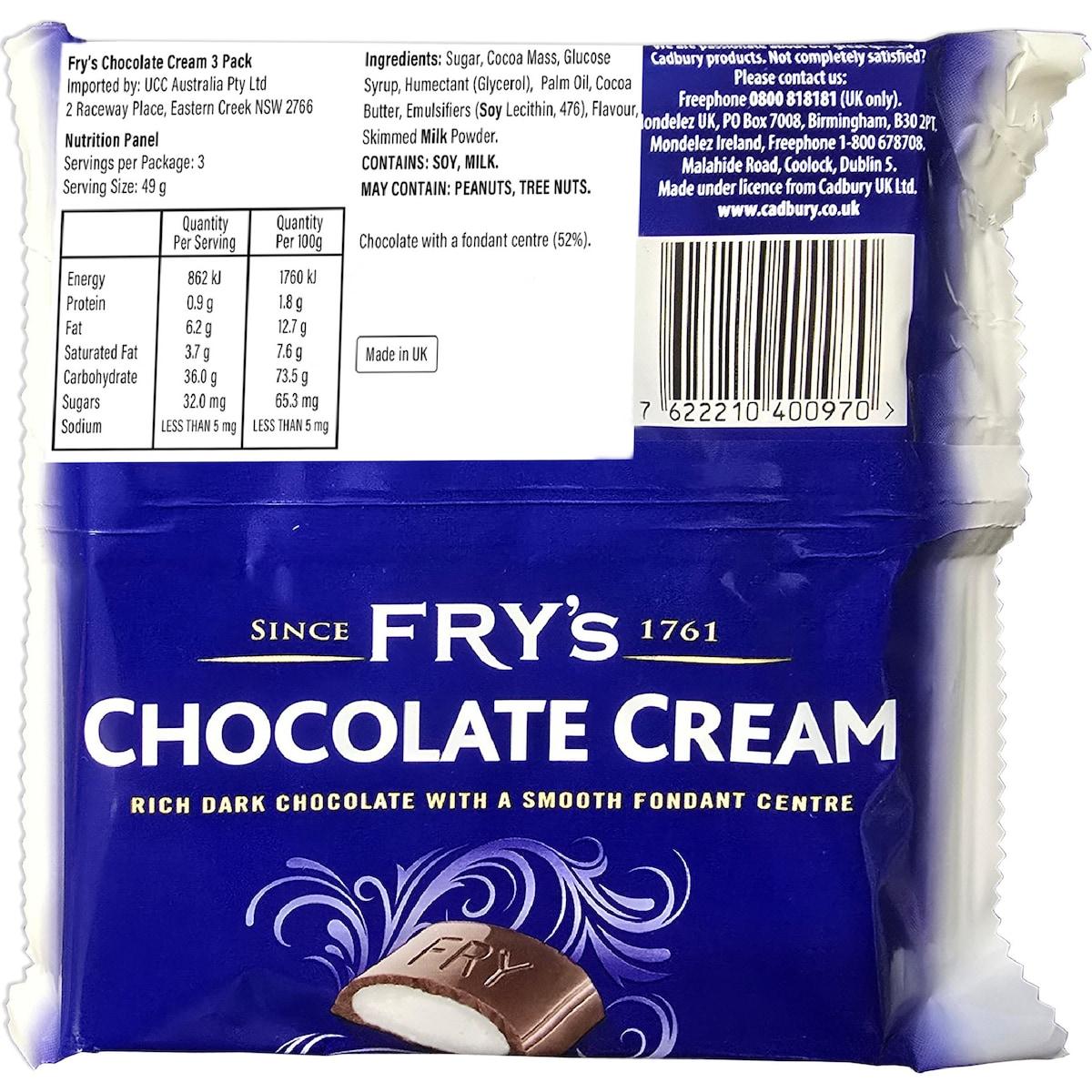 Treat yourself to the creamy, chocolaty goodness of Frys Chocolate Cream Bars 49g X 3 Bars — where rich chocolate meets smooth cream!