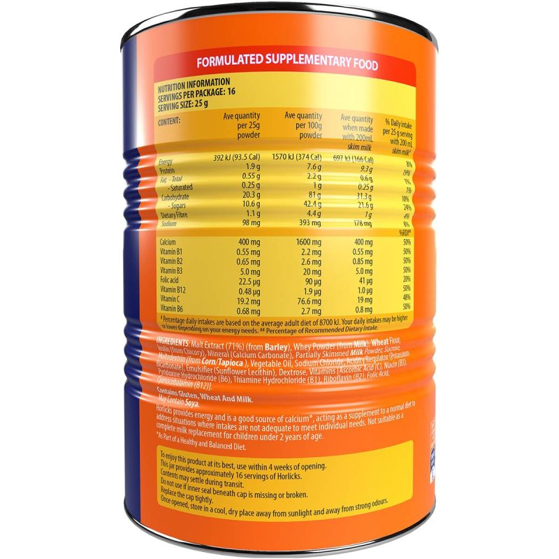 Indulge in the rich and comforting taste of Horlicks Milk Chocolate Malt Drink Powder. This 400g tub contains a delicious blend of malt and milk chocolate flavors, offering a satisfying and flavorful beverage option that’s perfect for winding down in the evening or enjoying a cozy moment. With its smooth and creamy texture, it provides a convenient and soothing way to savor the essence of malt and chocolate in liquid form. Whether you’re creating a warm and comforting drink or adding it to recipes, Horlicks Milk Chocolate Malt Drink Powder Tub delivers a delightful and nostalgic taste that has been enjoyed for generations. Embrace the heartwarming goodness of malt and chocolate with every sip.