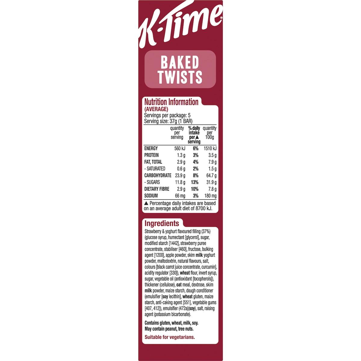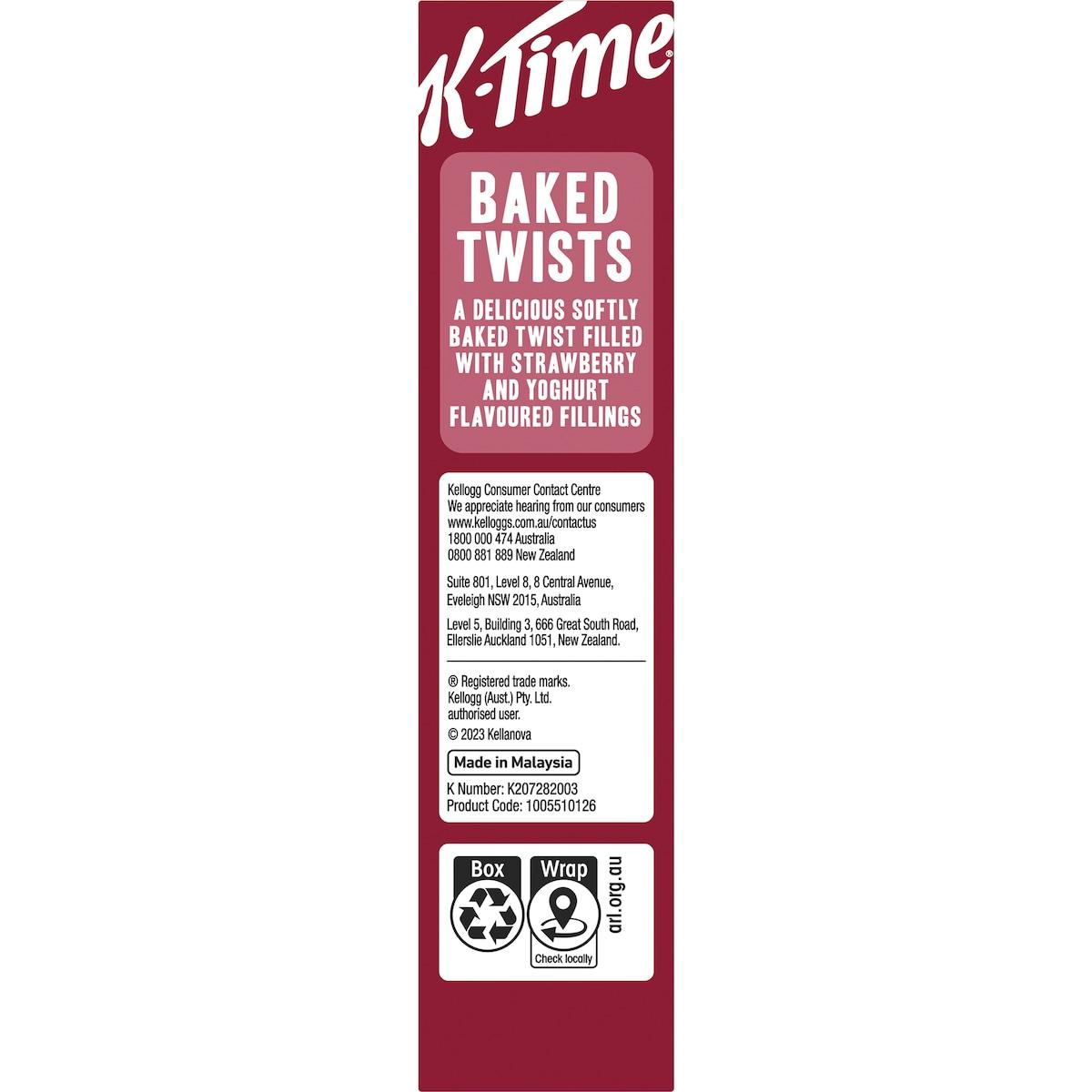 Kelloggs K-Time Baked Twists Strawberry Yoghurt Flavour Snack Bars 5 Pack