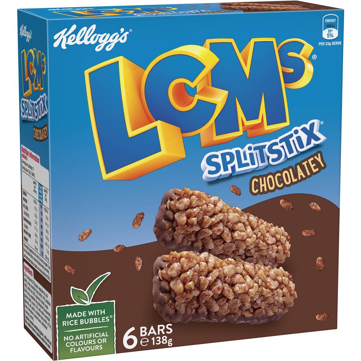 Kelloggs LCMs Split Stix Chocolate Puffed Rice Snack Cereal Bars 6 Pack
