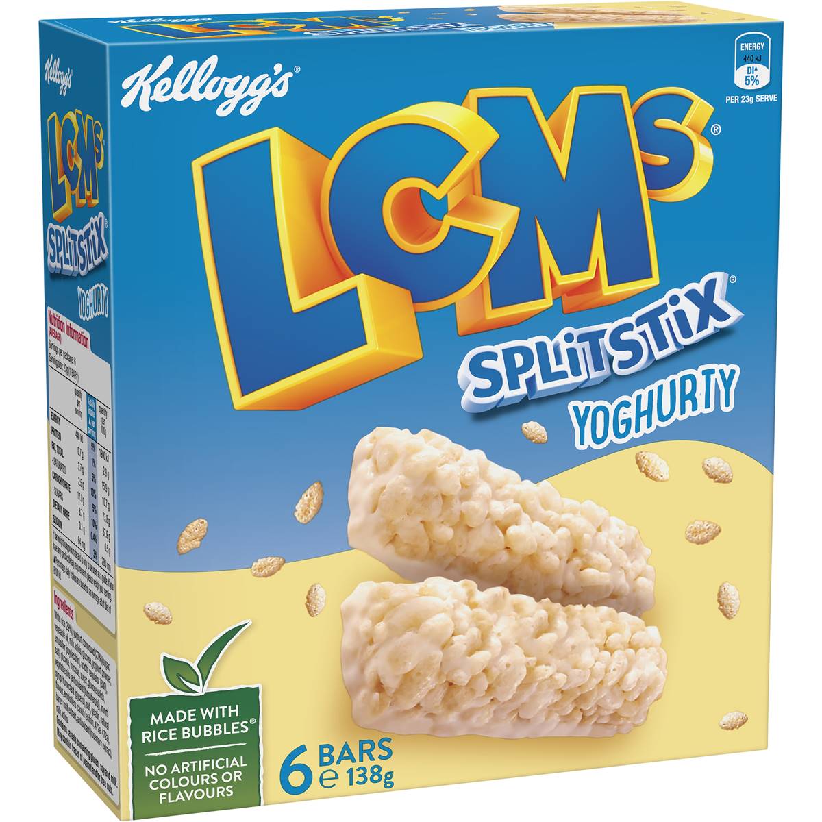 Kelloggs LCMs Split Stix Yoghurty Puffed Rice Snack Cereal Bars 6 Pack