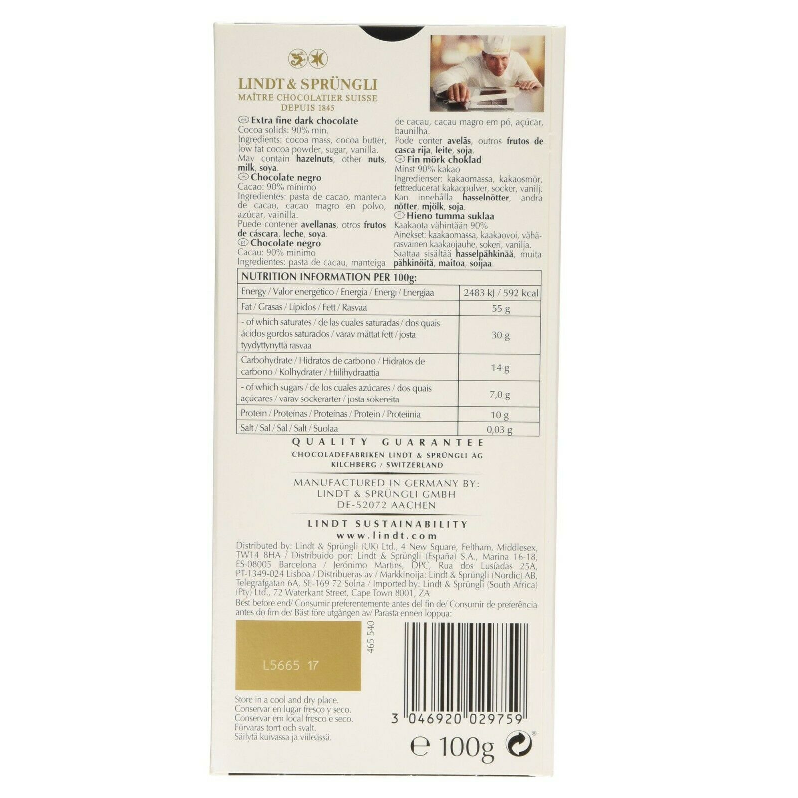 Lindt Excellence Supreme Dark Chocolate 90% Cocoa 100g Chocolate Block