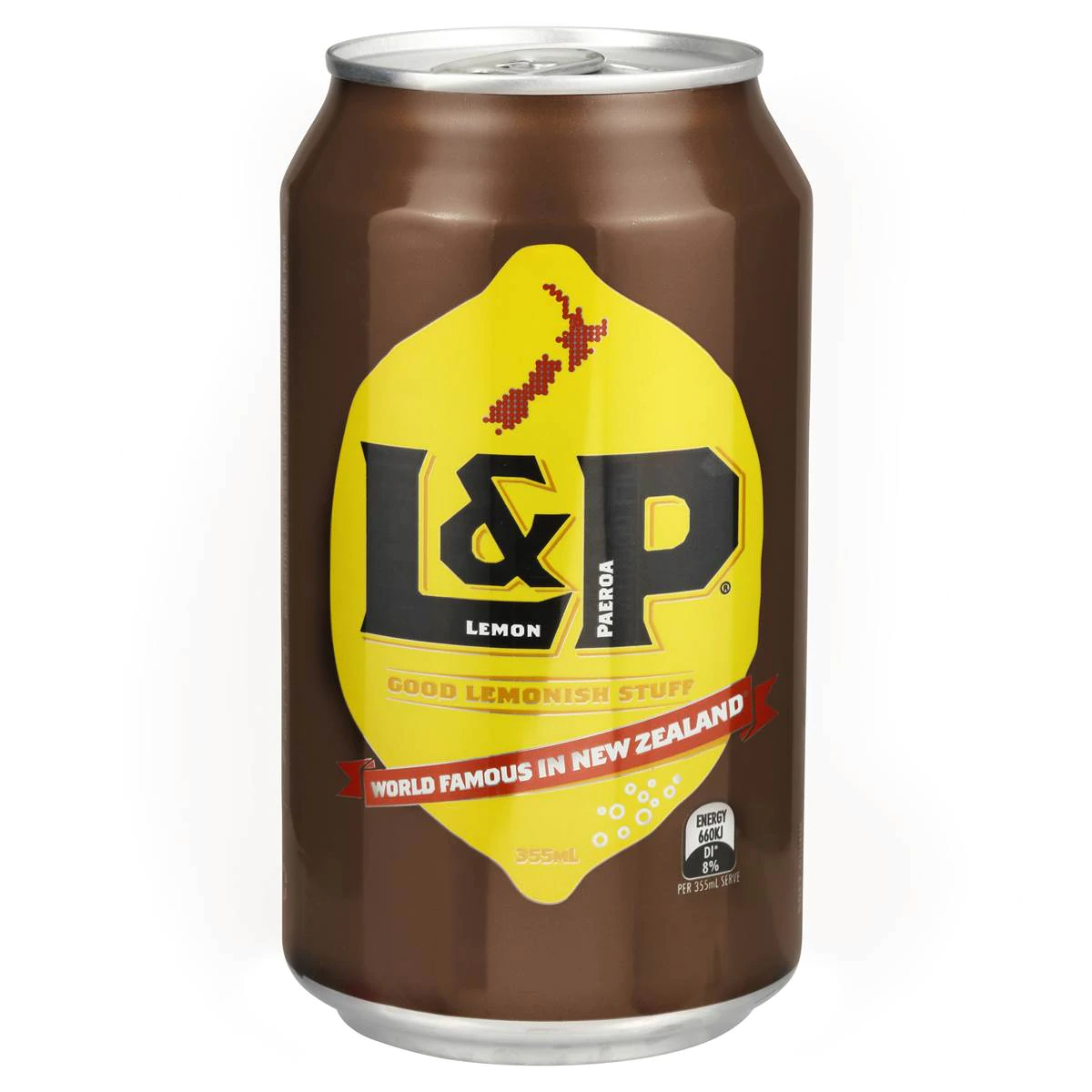 L&P Lemon and Paeroa NZ Famous Fizzy Soda Soft Drink Can 355ml