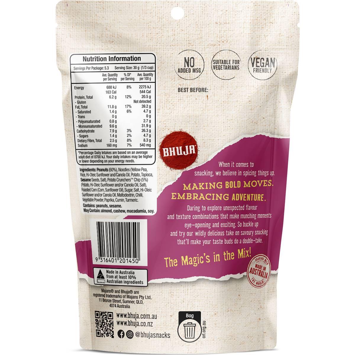 Raise the bar on snacking with Majans Bhuja Beer Mix, now available in a convenient 160g snack bag! Indulge in a flavorful medley of crunchy nuts, savory pretzels, and zesty seasoning, perfectly crafted to complement your favorite brew.
