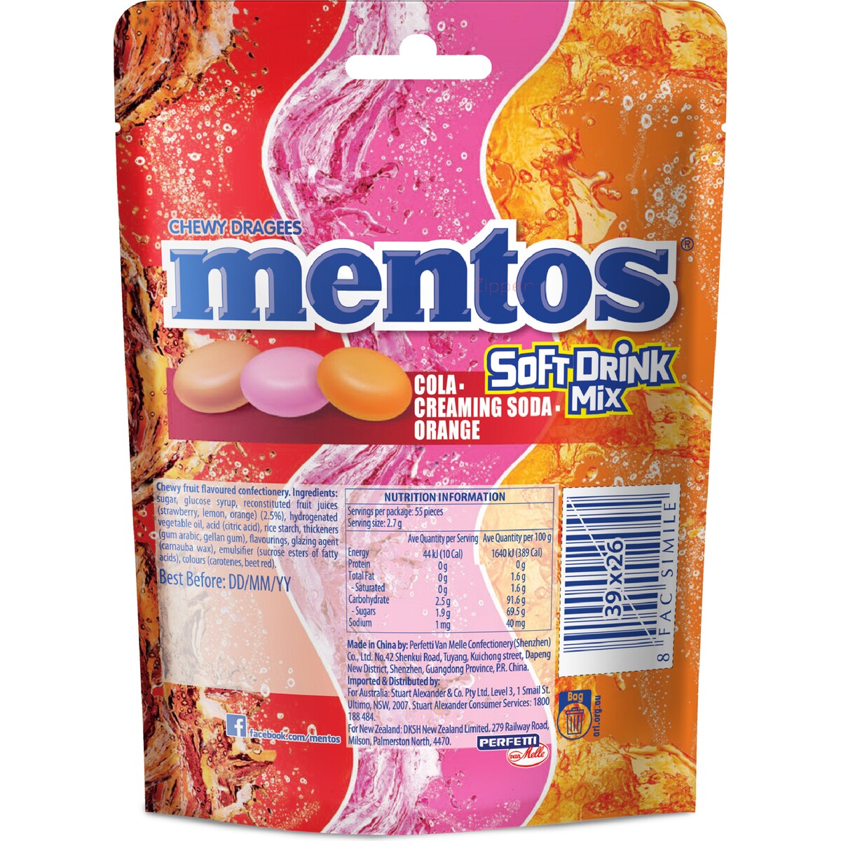 Mentos Soft Drink Flavour Mix Bag 150g brings the fun and fizz of your favorite sodas into chewy, refreshing candy pieces. Packed with an exciting assortment of soft drink-inspired flavors, this share-size 150g bag delivers a playful mix of sweet, tangy, and bubbly taste sensations in every bite. Perfect for sharing with friends, movie nights, road trips, or satisfying sweet cravings on the go.