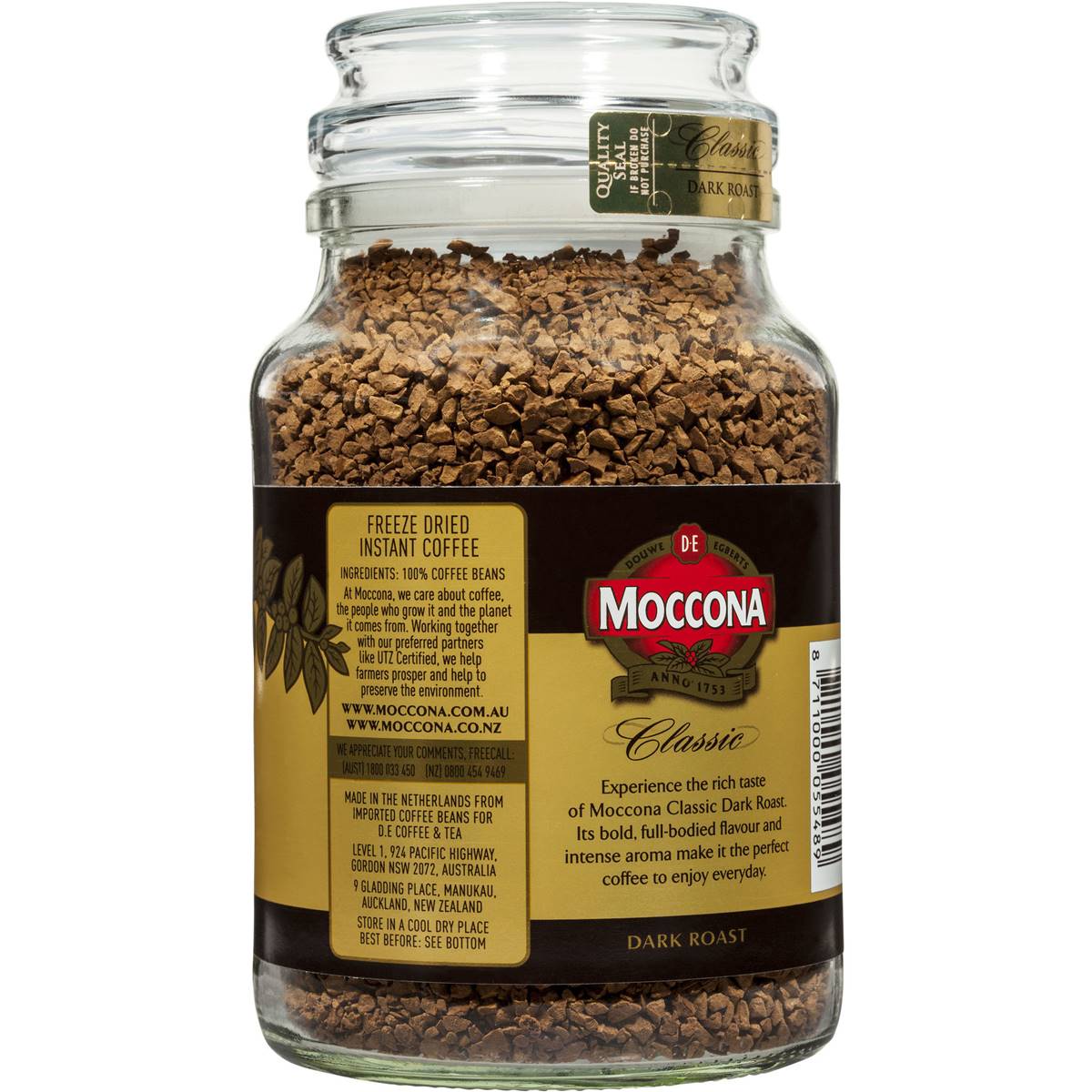 Elevate your coffee moments with the rich and bold taste of Moccona Classic Freeze Dried Dark Roast Instant Coffee. Made from carefully selected beans, this coffee is freeze-dried to preserve the flavor and create a satisfying and intense flavor profile. With every sip, you’ll experience the deep and robust taste that characterizes Classic Dark Roast. The 200g jar is perfect for brewing your favorite cup of bold coffee whenever you desire, whether you’re seeking a strong and invigorating brew or simply taking a moment to indulge. Moccona’s commitment to quality ensures that each cup is a moment of coffee excellence you can savor. Elevate your coffee moments with the classic quality and taste that Moccona is known for.