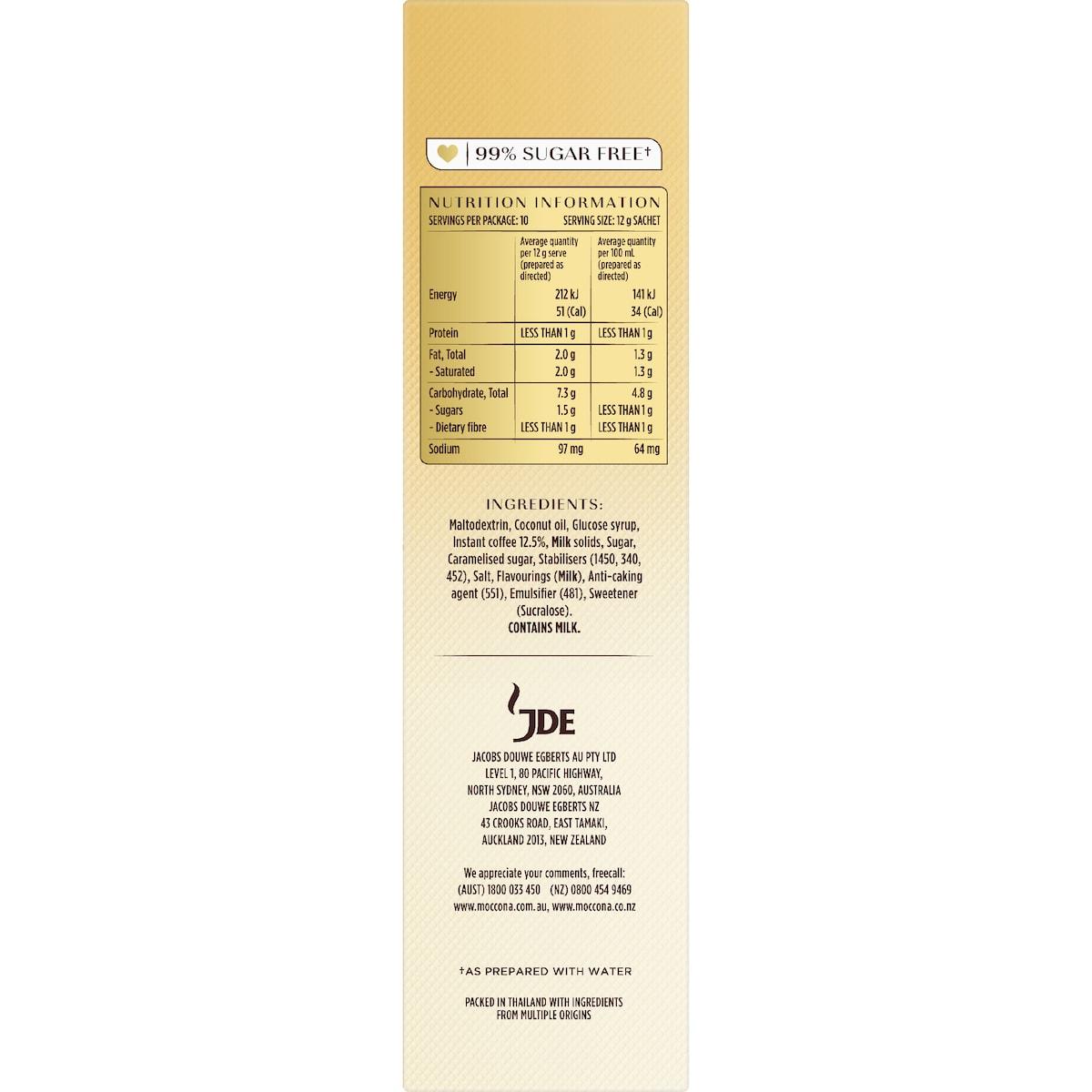 Moccona Latte Sugar Free Coffee Sachets 10 Pack