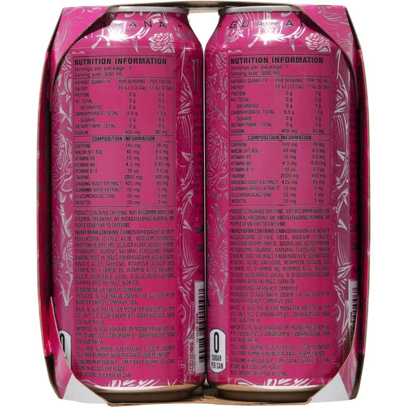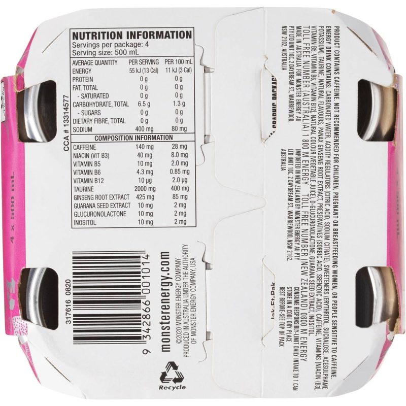 Monster Energy Zero Sugar Ultra Rosa Drink Can 500ml X 4 Pack