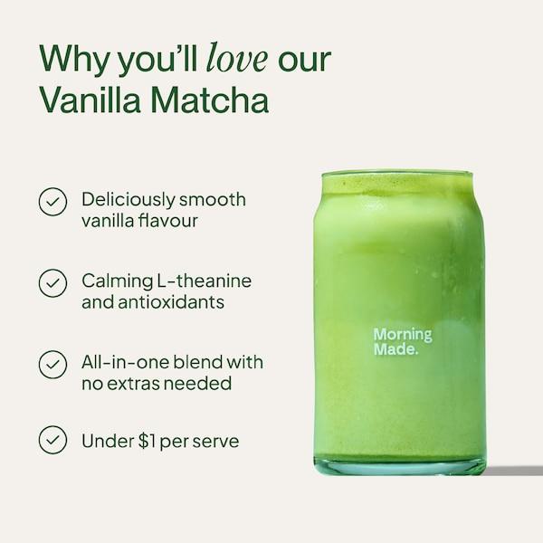 Savor the comforting taste of Morning Made Matcha Latte Vanilla Blend — a flavorful way to enjoy matcha any time of day.