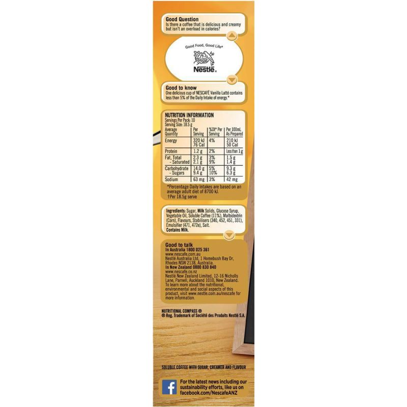 Nescafe Coffee Vanilla Latte Sachets 10 Pack