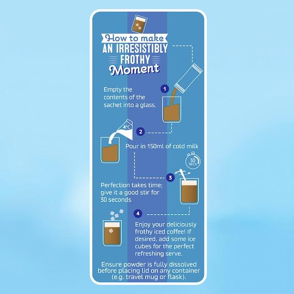 Simply mix a sachet with cold water or milk, stir, and enjoy an irresistibly chilled latte that’s as easy to make as it is to love. Perfect for warm days, afternoon breaks, or when you’re craving something sweet and energising.