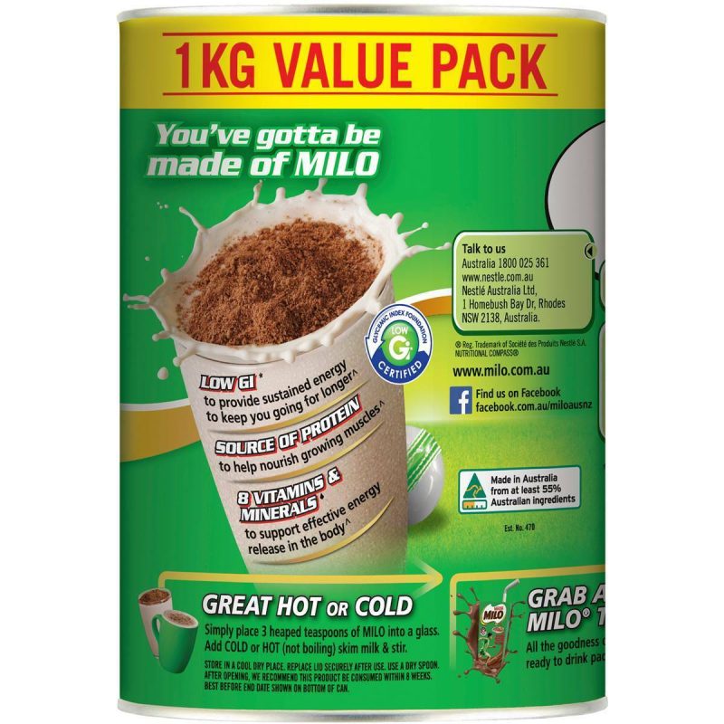 Elevate your hot beverages with the rich and satisfying flavor of Nestle Milo Chocolate Choc-Malt Malted Drinking Chocolate. This 1kg tub contains a blend of malted barley, milk powder, and cocoa, creating a chocolatey and malty beverage option that’s perfect for cozy moments. Whether stirred into hot milk, combined with water, or added to coffee, this malted drinking chocolate offers a comforting and indulgent way to enjoy the flavors of Milo. Warm up with the delicious taste of Nestle Milo Chocolate Choc-Malt Malted Drinking Chocolate and treat yourself to a soothing and delightful experience.
