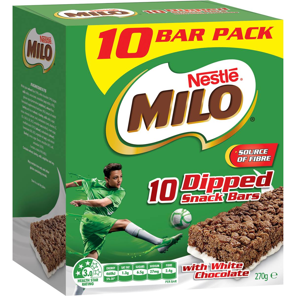 Nestle Milo Dipped White Chocolate Breakfast Cereal Snack Bars 10 Pack