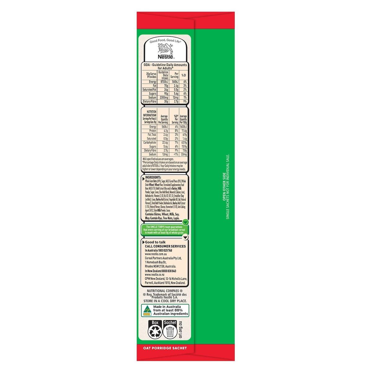 Nestle Milo Porridge Quick Oats Sachets 8 Pack