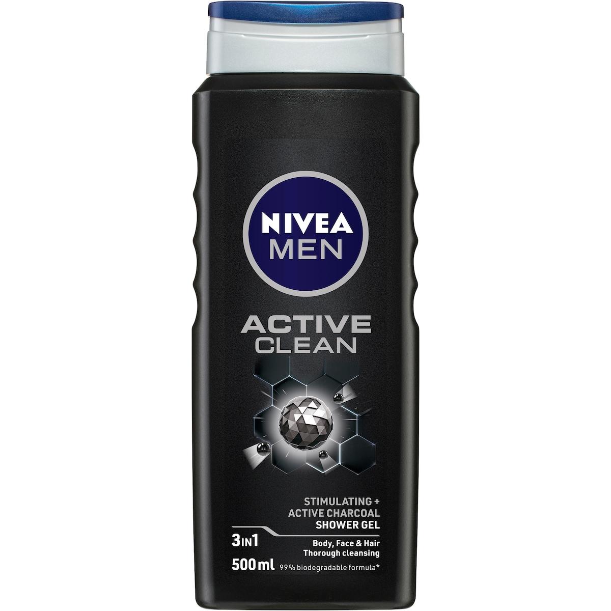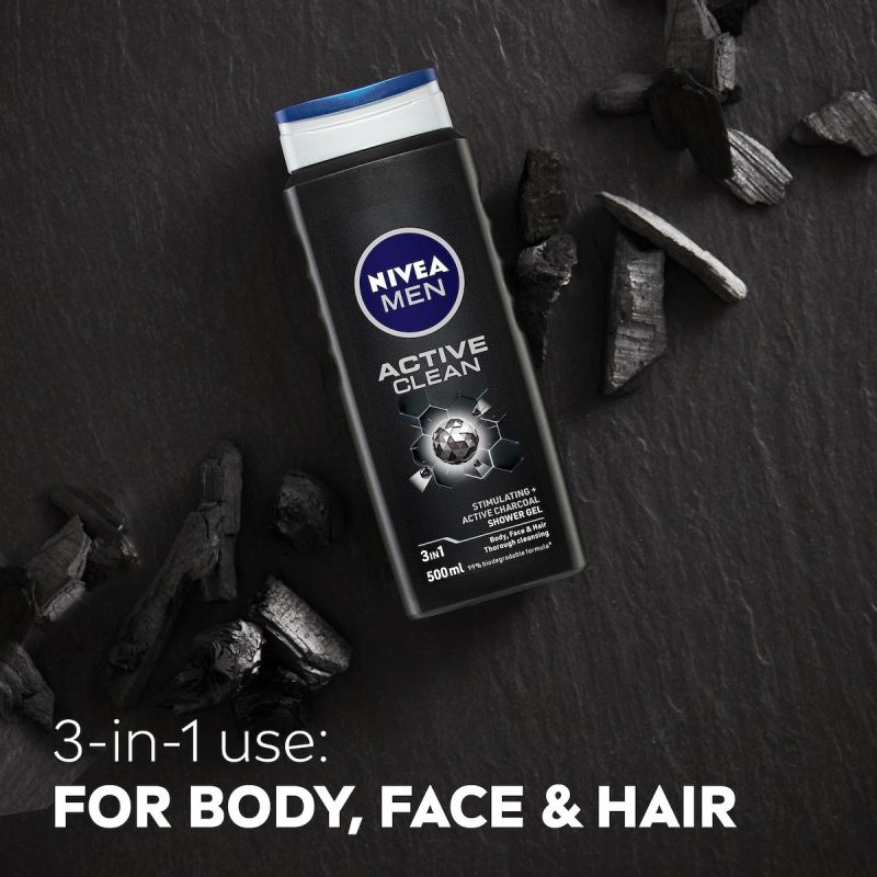 Nivea Men Active Clean 3-in-1 Shower Gel 500 ml – Deep Clean, Total Refresh