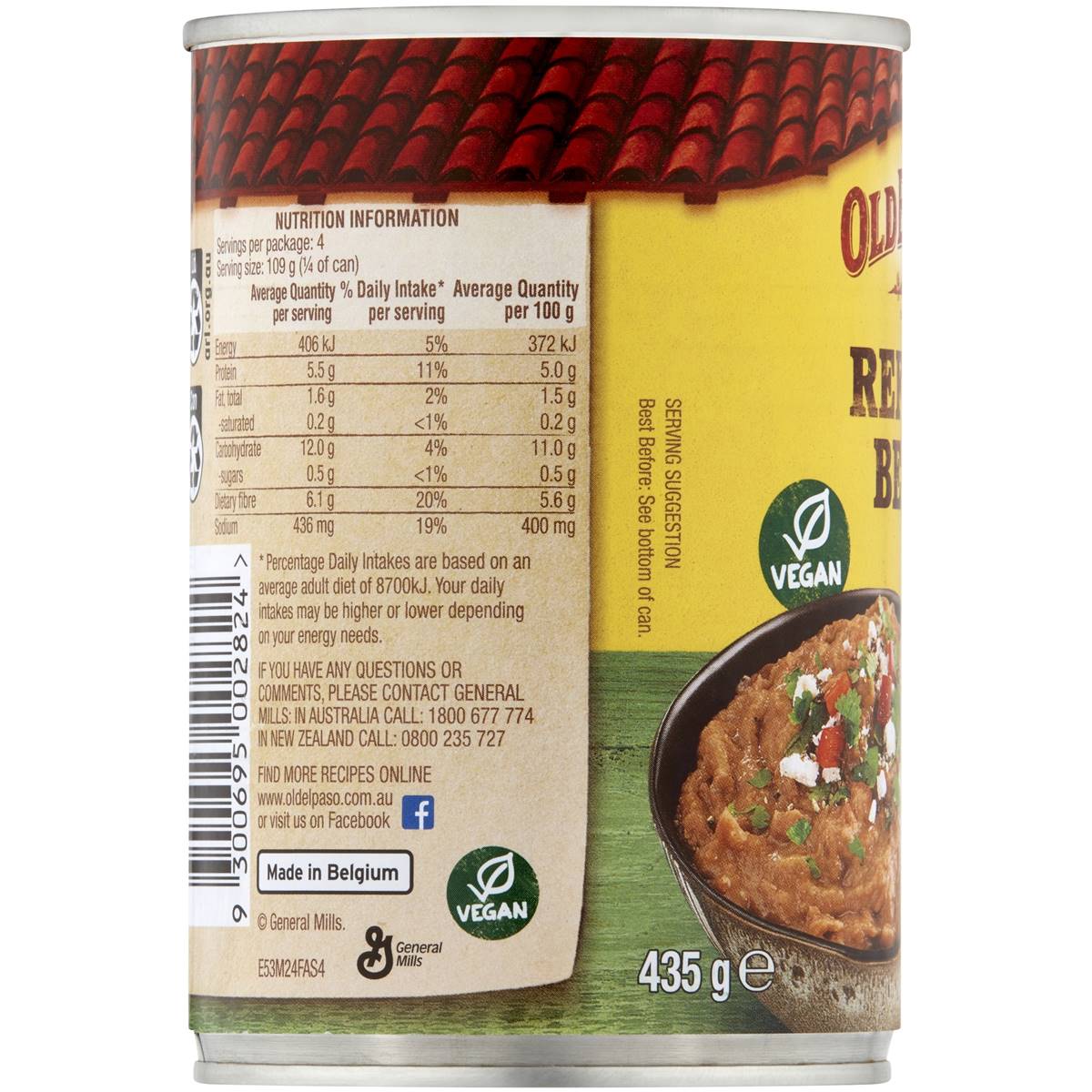 Add a classic Mexican touch to your dishes with Old El Paso Refried Brown Mashed Beans. This 425g can contains smooth and flavorful refried beans that are perfect for adding an authentic element to your tacos, burritos, and more. The beans are pre-cooked, mashed, and seasoned with traditional Mexican spices, offering a convenient and versatile ingredient for your culinary creations. Whether you’re crafting a layered dip or adding a creamy texture to your enchiladas, these refried brown mashed beans bring depth of flavor and authenticity to your meals. Old El Paso’s dedication to quality ensures that you’re getting the best beans for your Mexican dishes. Elevate your creations with the rich and savory taste of Old El Paso Refried Brown Mashed Beans.