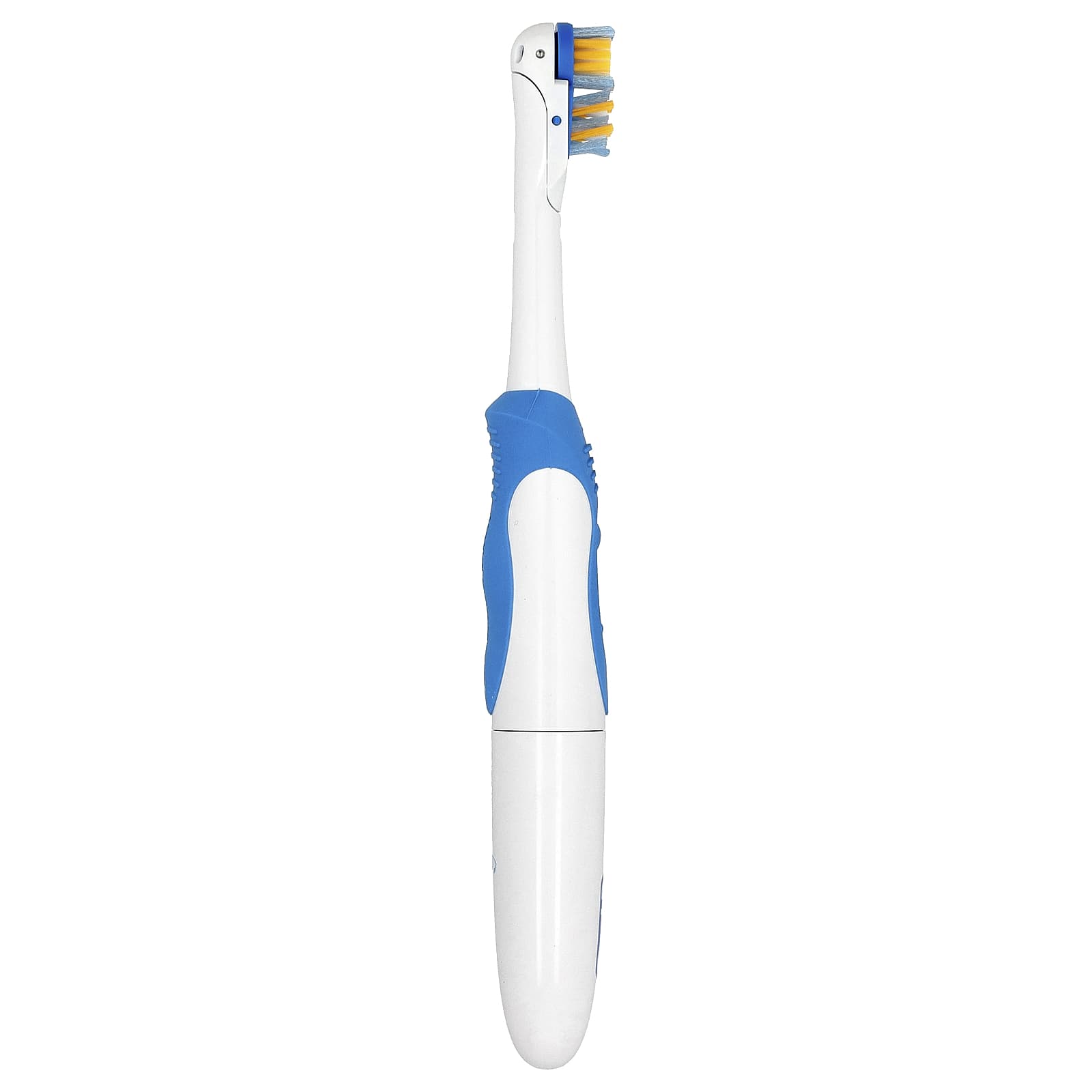 The unique polishing cup in the brush head works to naturally whiten teeth, while the rotating power bristles remove more plaque than a regular manual toothbrush. Lightweight and easy to handle, it’s powered by replaceable batteries for convenience at home or on the go.