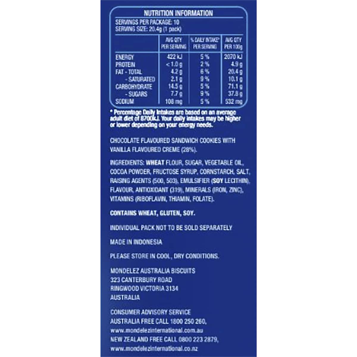 Oreo Original Mini Cookies Biscuits 10 Pack 204g