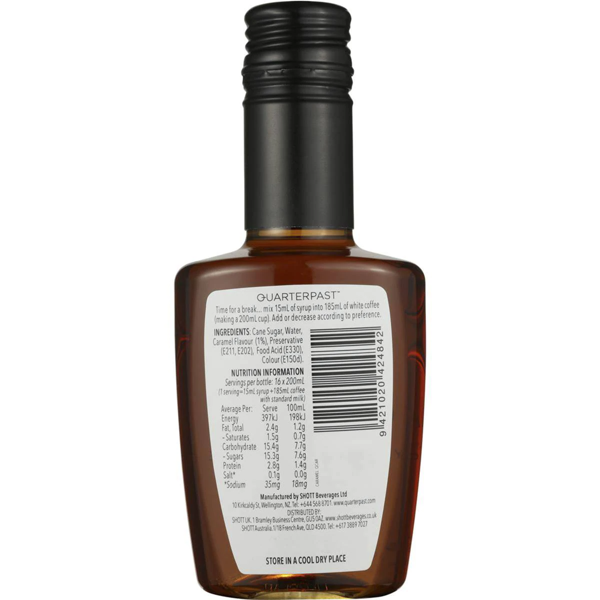 Indulge in the rich and velvety taste of Quarter Past Caramel Syrup for Coffee. This 250ml bottle offers a premium caramel syrup that’s perfect for adding a luscious and sweet twist to your coffee creations. Quarter Past Caramel Syrup is crafted with natural flavors and is free from artificial additives, ensuring an authentic taste that elevates your coffee without overpowering it. Whether drizzled over your latte, blended into your frappuccino, or used to create a caramel macchiato, Quarter Past Caramel Syrup for Coffee provides a versatile and delightful way to enhance your favorite beverages. Experience the richness of caramel and transform your coffee into a luxurious treat.