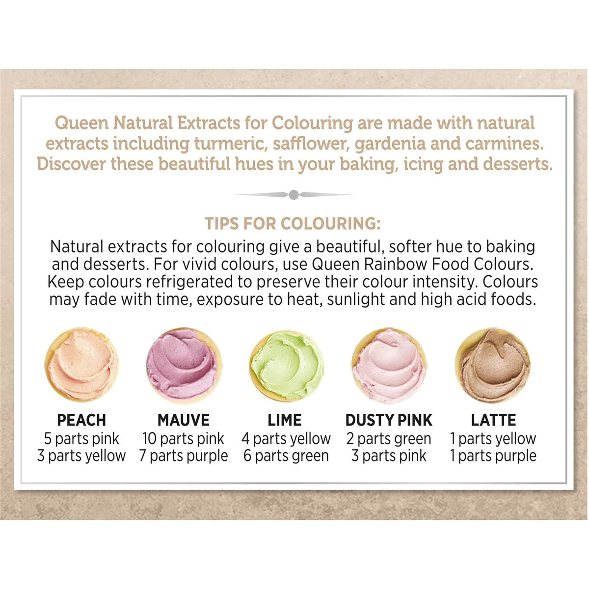 Elevate your culinary creations with the vibrant and natural colors of Queen Natural Food Dye Rainbow Colours. This pack includes four vibrant colors sourced from natural extracts, allowing you to add a touch of visual delight to your cakes, desserts, and baked goods. Crafted with care, these food dyes are free from artificial colors and are perfect for those who seek a more wholesome approach to food coloring. Whether you’re decorating a birthday cake, adding flair to your cookies, or simply experimenting with colorful recipes, Queen Natural Food Dye Rainbow Colours offer a palette of possibilities to enhance your culinary masterpieces. Embrace the beauty of natural colors and let your creativity shine in the kitchen.