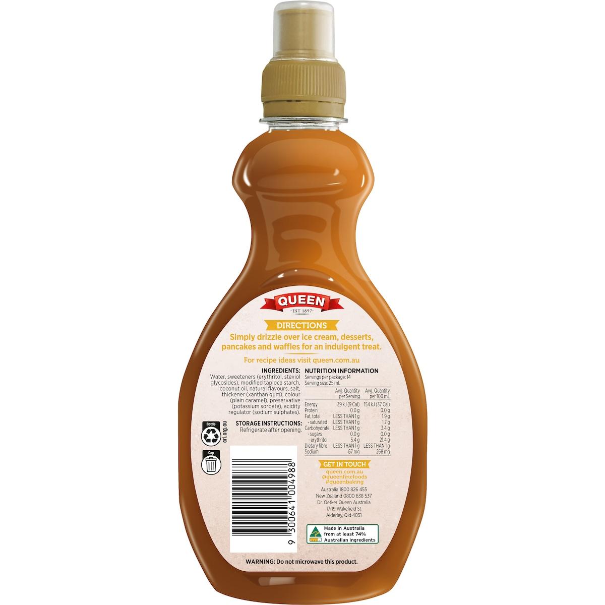 Queen Sugar Free Caramel Dulce De Leche Flavoured Topping Sauce 355ml