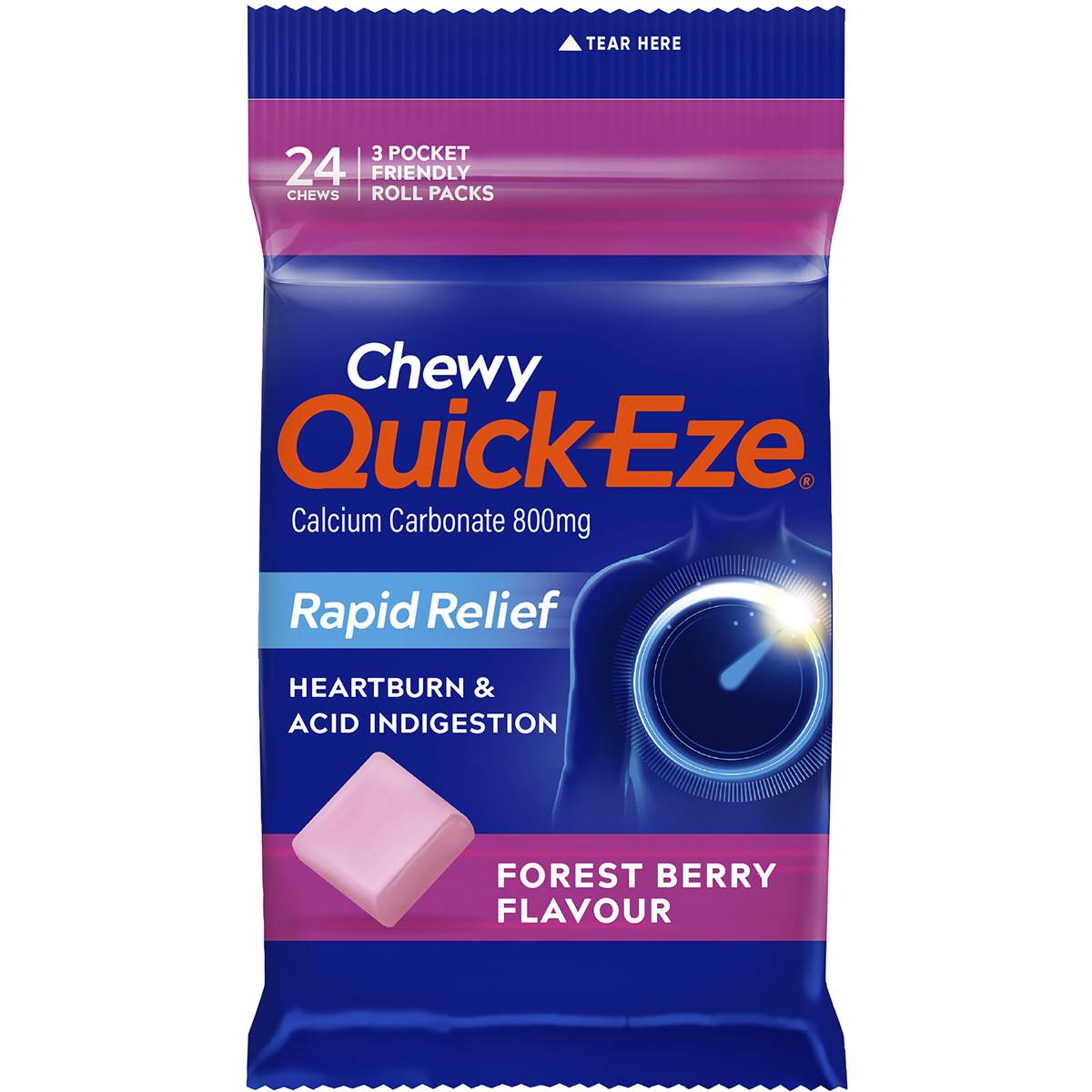 Quick Eze Rapid Relief Forest Berry Chewy Antacid Tablets 8 Pieces X 3 Pack