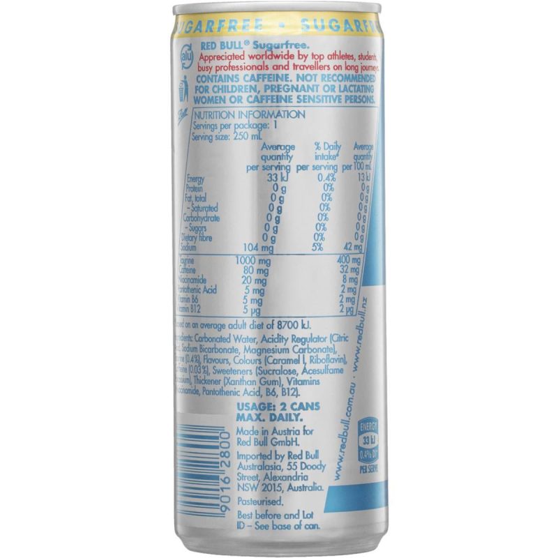 Whether you’re hitting the gym, tackling a project, or simply need a pick-me-up during your day, Red Bull Sugar-Free Energy Drink provides the fuel without the sugar crash. Embrace the energy, embrace the taste, and make the healthier choice with Red Bull Sugar-Free in the convenient 250ml can size.