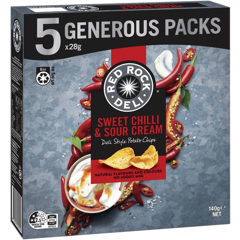 Elevate your taste buds with the dynamic flavors of Red Rock Deli Sweet Chilli Sour Cream Chips pack. This collection of 5 packs, each containing 28g of chips, offers the perfect balance of sweet and spicy in every bite. Whether you’re seeking a snack with a zesty kick or sharing moments with friends, these potato chips bring excitement to your palate. Embrace the bold and vibrant taste of Red Rock Deli Sweet Chilli Sour Cream Chips and elevate your snacking experience.
