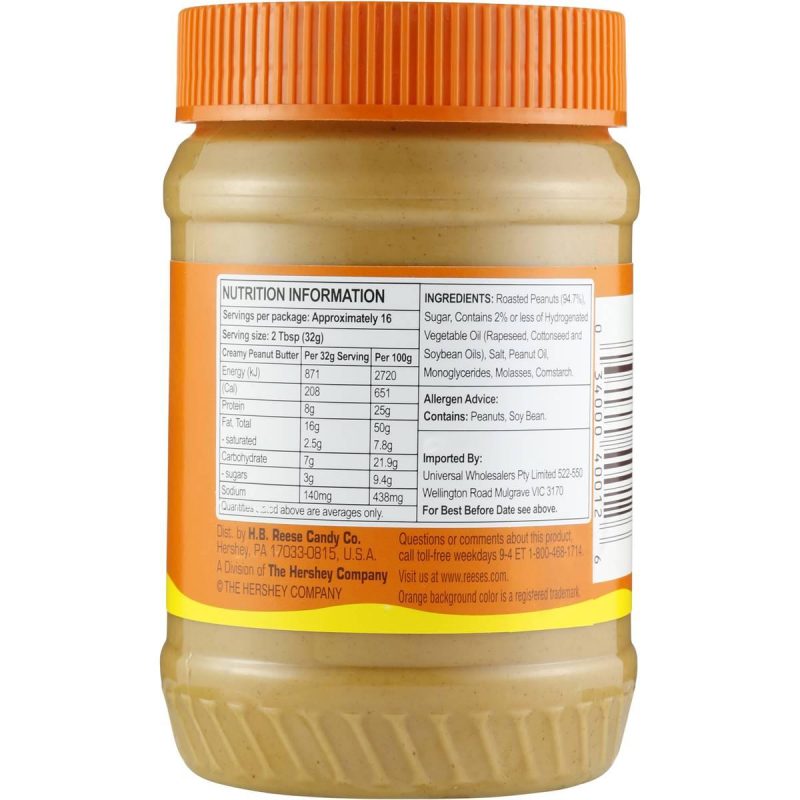 Introducing Reese’s Creamy Peanut Butter Spread, a delectable treat for peanut butter enthusiasts. Packed in a generous 510g jar, this smooth and velvety spread is crafted with the finest quality roasted peanuts, delivering a rich and indulgent taste that’s sure to satisfy your cravings.