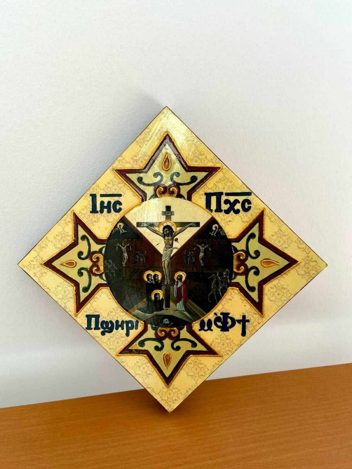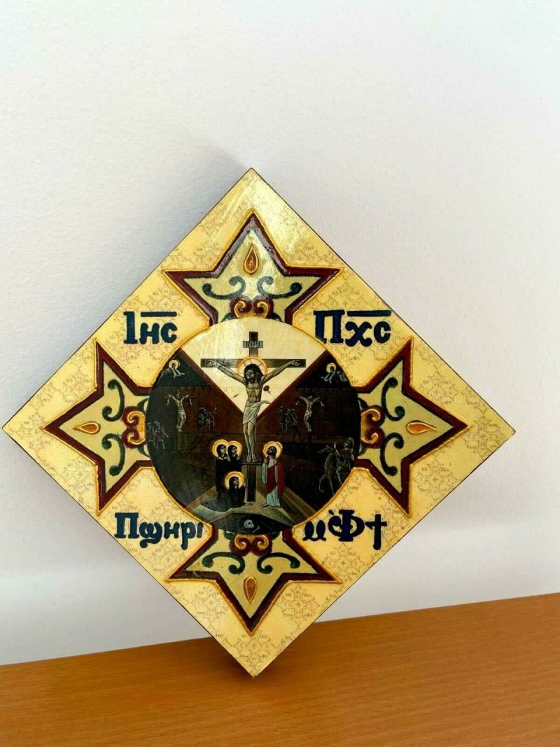 Religious Christian Orthodox Art Plaque Painting Jesus Crucifix Easter