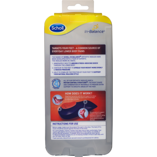 Step into lasting comfort and support with Scholl In-Balance Everyday Knee To Heel Orthotic Insoles. Specially designed by foot care experts, these insoles help reduce pain and pressure from your knees to your heels, providing the perfect balance of cushioning and stability for all-day wear.